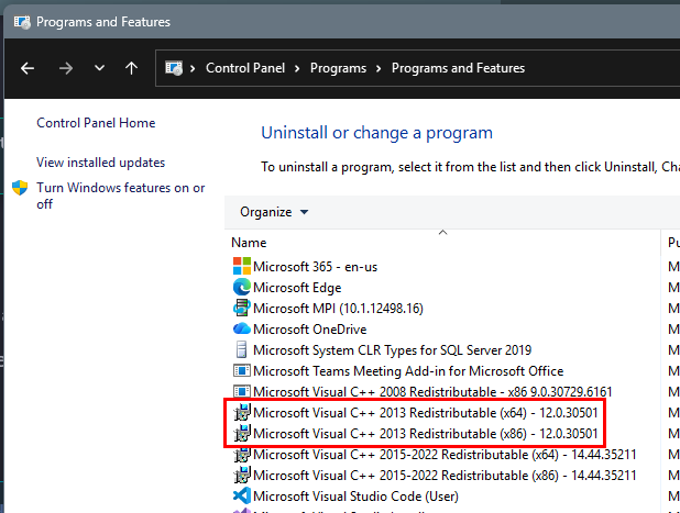 Install Visual C++ Redistributable Packages for Visual Studio 2013