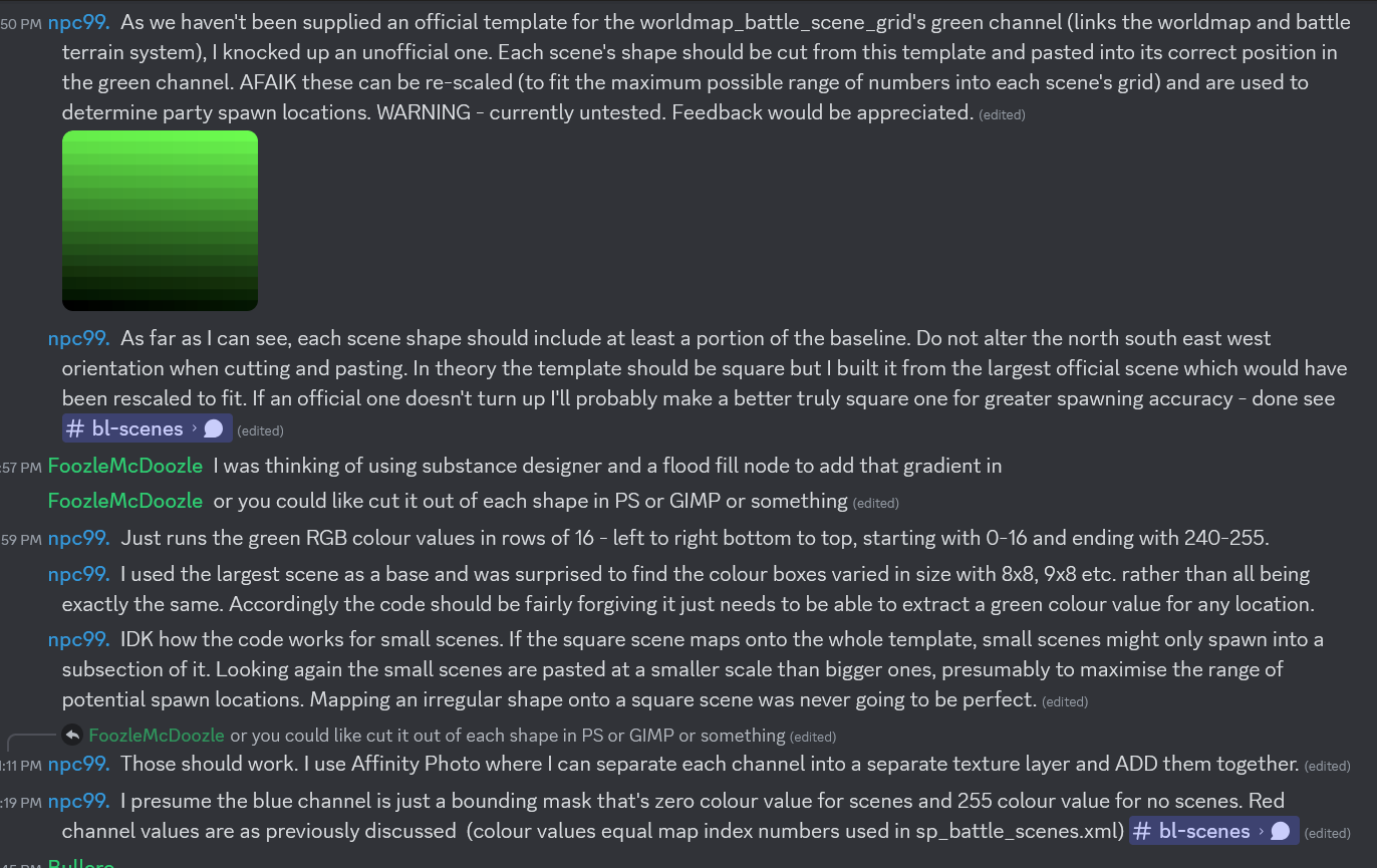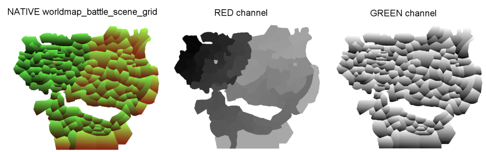 GREEN channel should define the orientation how parties enter the battle map - from which side.